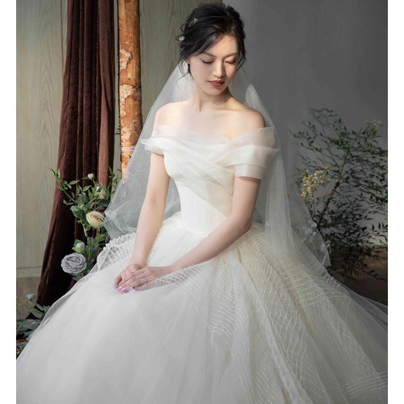 楽天市場 ウェディングドレス Wedding Dress オーダーメイド可能 オフショルダー ウエディングドレス 床付きタイプ Aライン 編み上げ 前撮り 後撮り 披露宴 結婚式 演奏会 海外挙式 胸元からの着丈は約140cm S Xxl Wd396af ビタースウィート楽天市場店